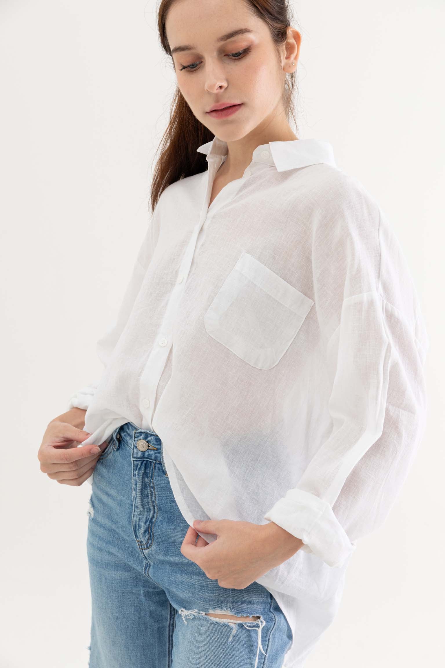 There is something classic and elegant about slightly opaque linen shirts we love. This shirt is cut from cool linen in a loose shape that looks great untucked or tucked. Wear yours with white jeans and slides for a weekend brunch.
