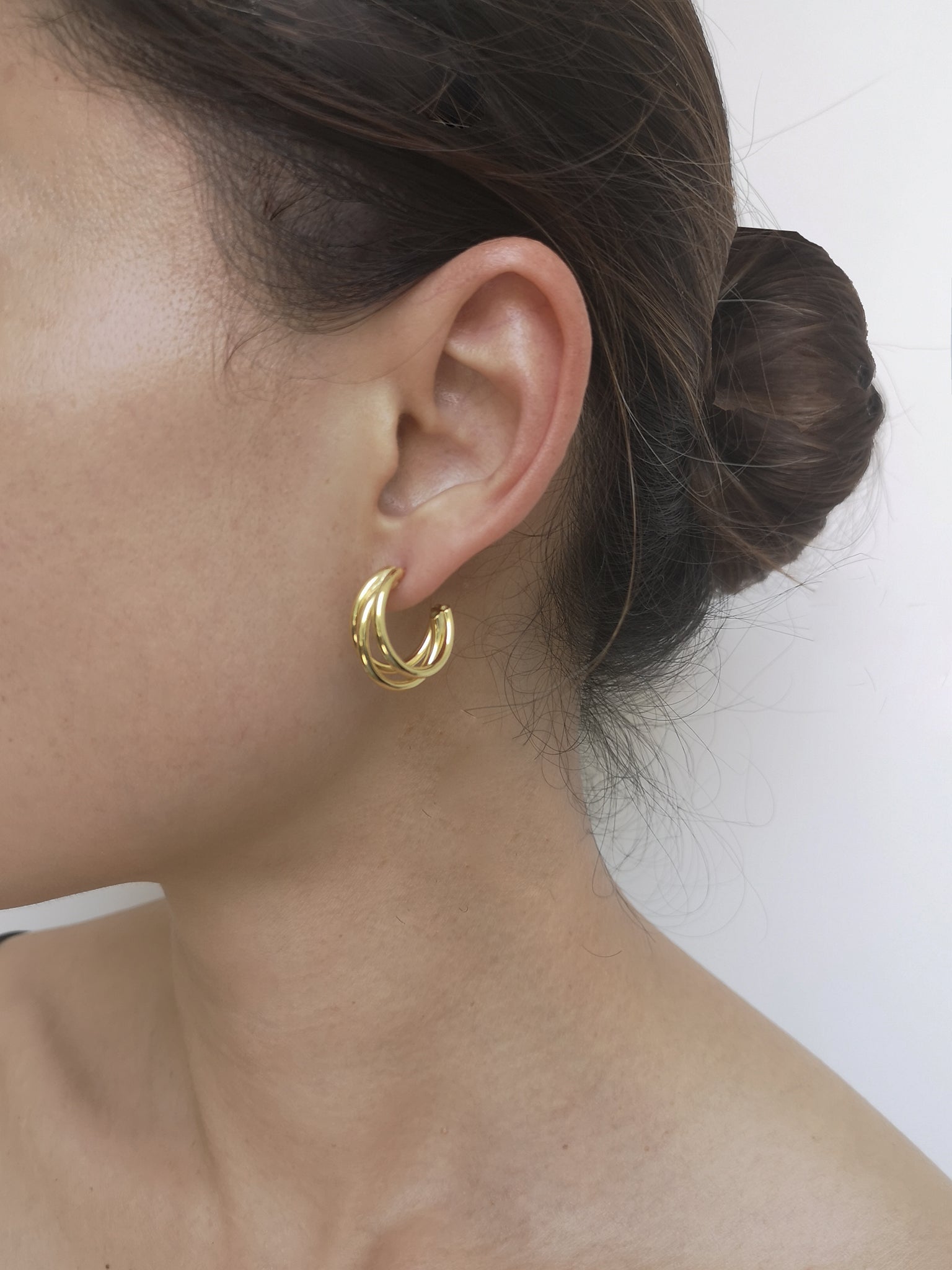 Featuring a trio of high-shine hoops, these earrings are an easy accessory to style with everything from simple button downs to more dressy options.