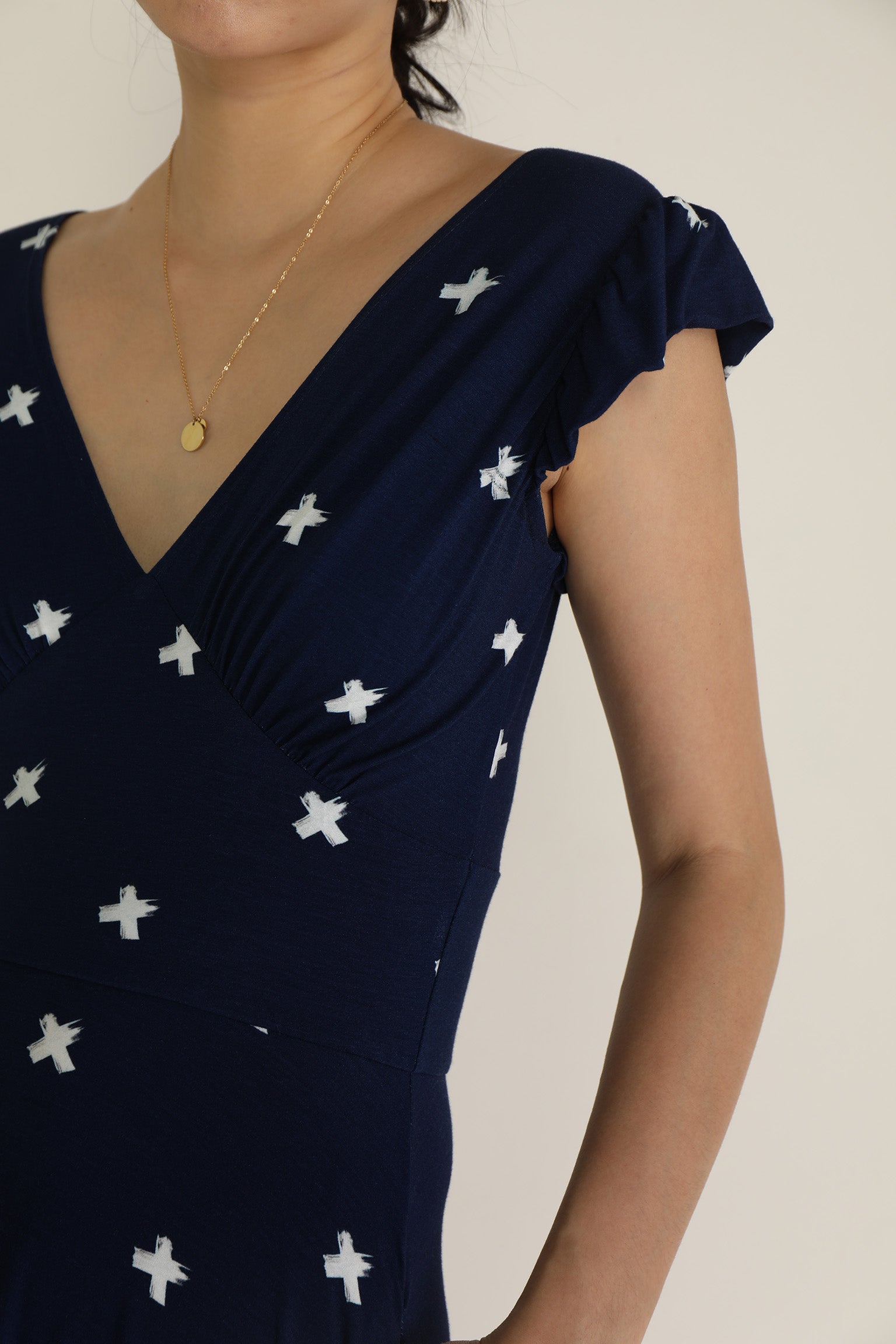 We've added ruffles on the shoulder straps to add a feminine touch to the dress.