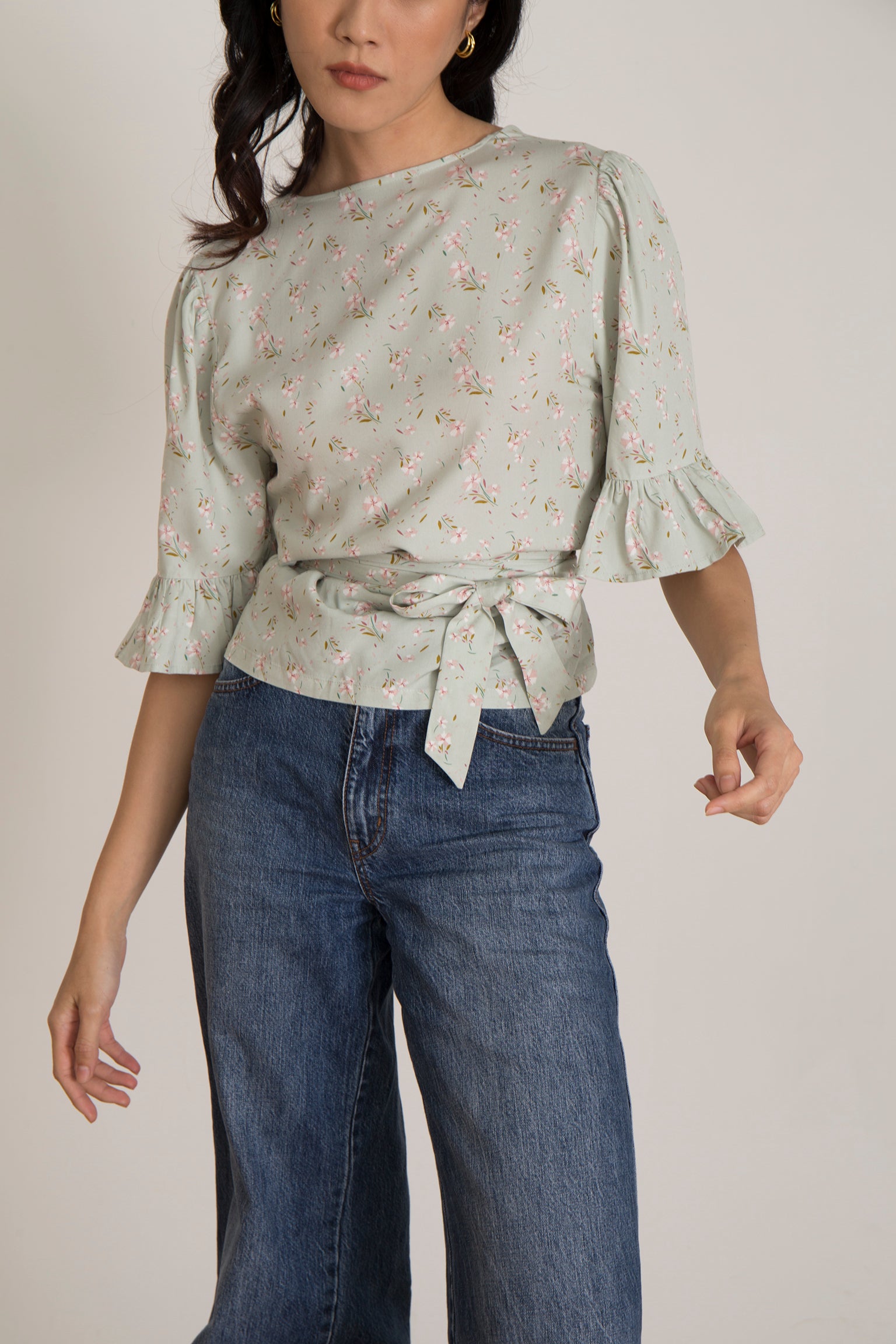 The flutter sleeves adds a fun and feminine look to the outfit.