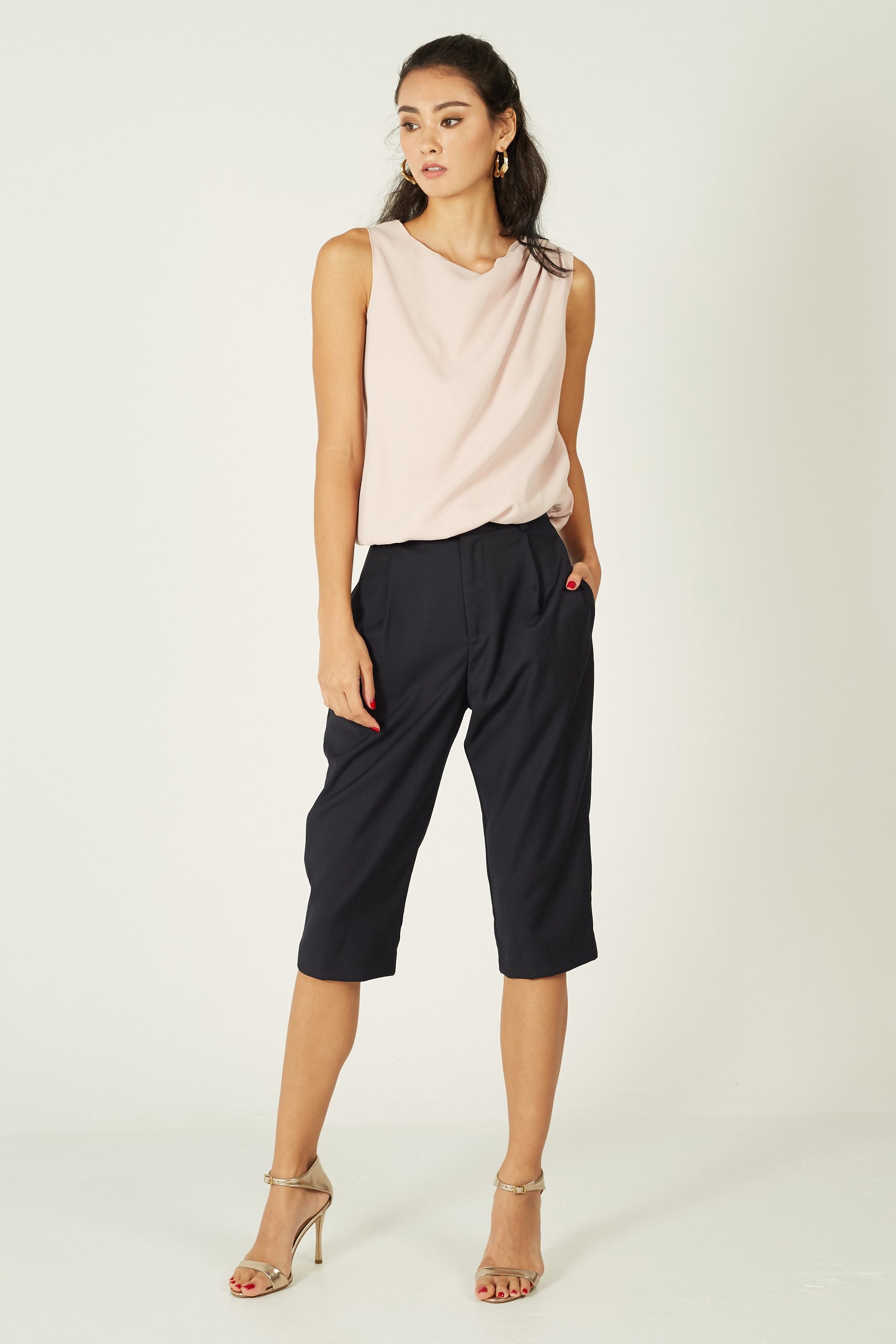 We personally want this piece in every colour. Cut from a luxurious mid-weight crepe in a loose silhouette, this piece is gently gathered at the shoulder, creating a draped effect through the front. It has an elastic waistband which allows you to wear it tucked in or out.