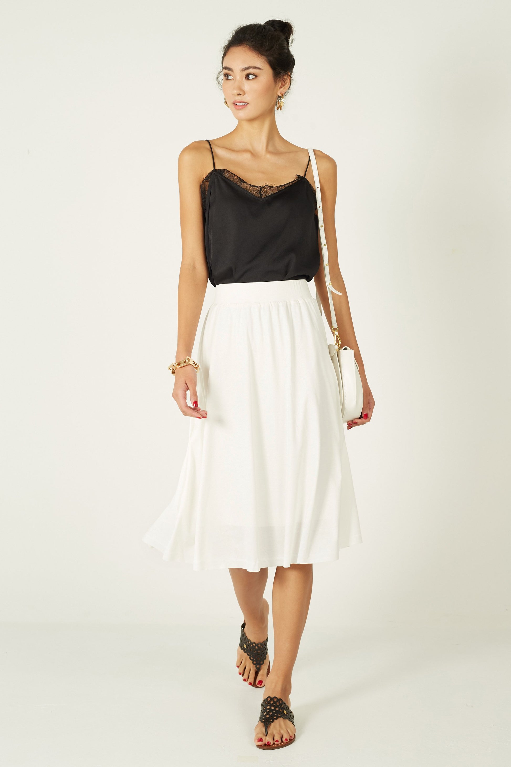 P.S. “Summer breeze, makes me feel fine...” Gemma is a breezy midi skirt that gives off just the right amount of flirt while encouraging you to stay airy. Pair with the Nadia tee, made from the same luxuriously soft & sheeny cotton, for a casual yet put-together look.