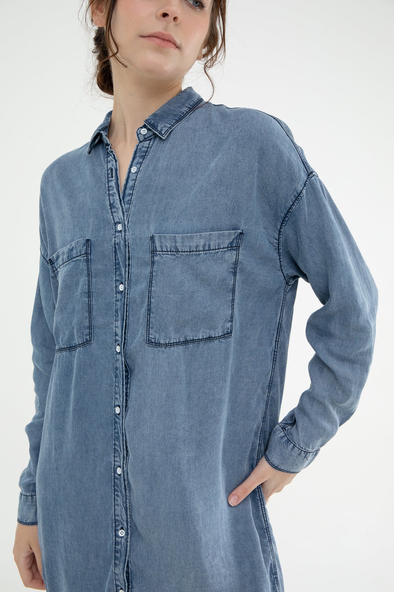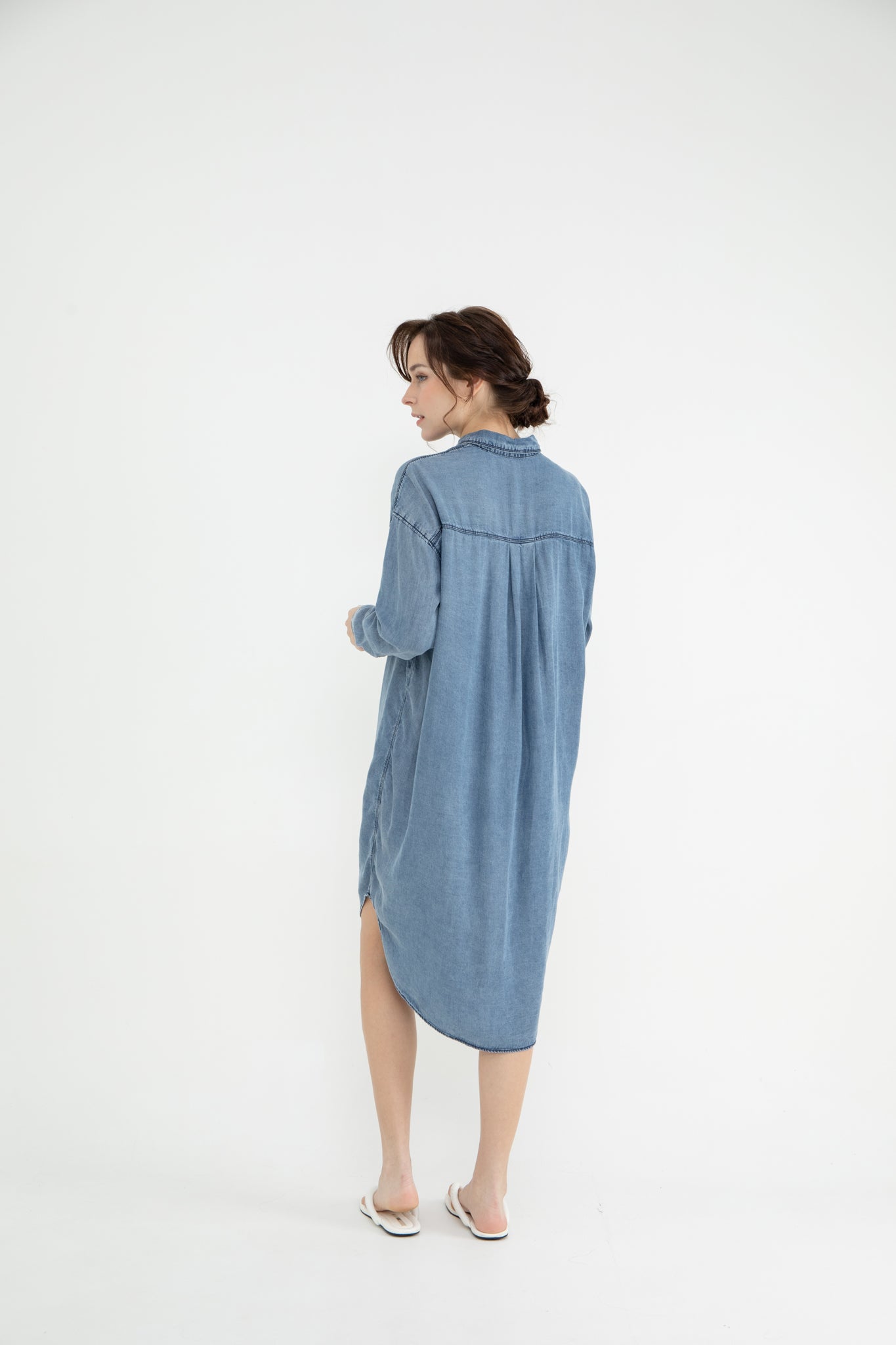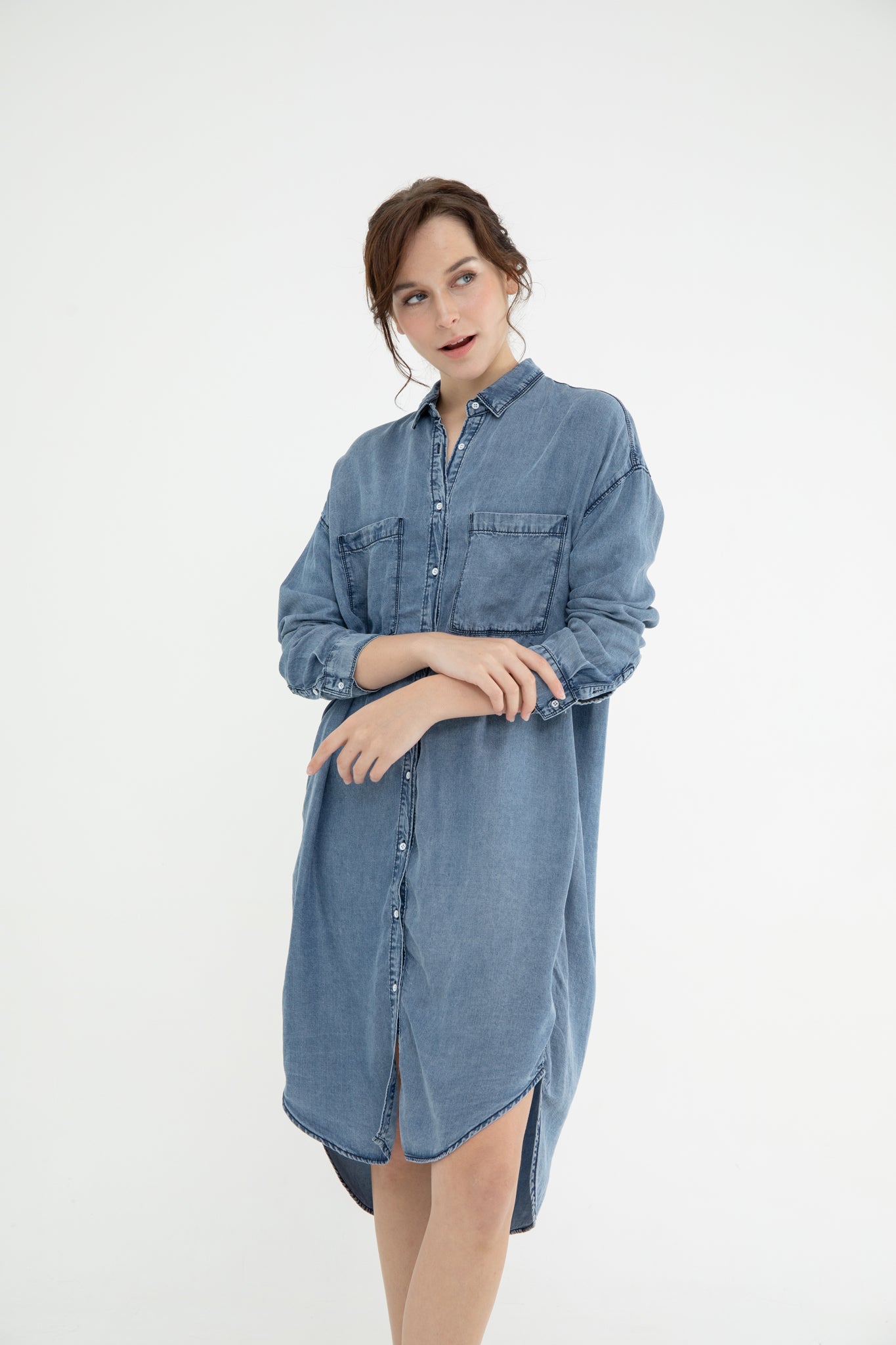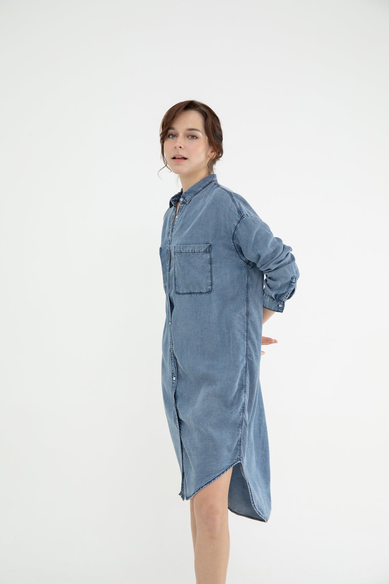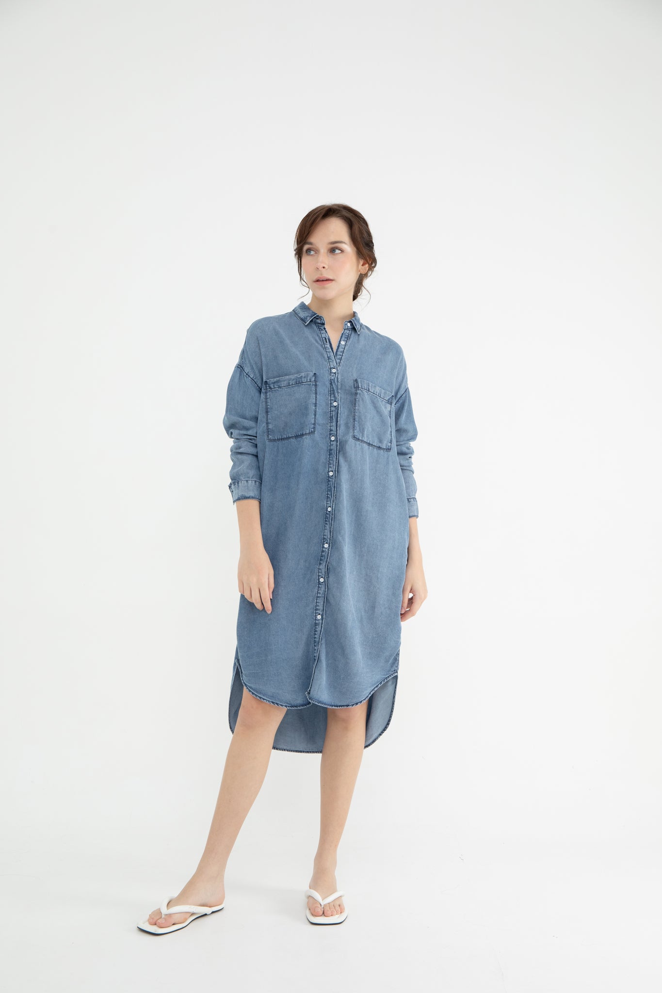 We love a good shirt dress. Jones is made from soft denim. It's cut in a loose shape and has pockets at the chest. Wear yours with sneakers or sandals.