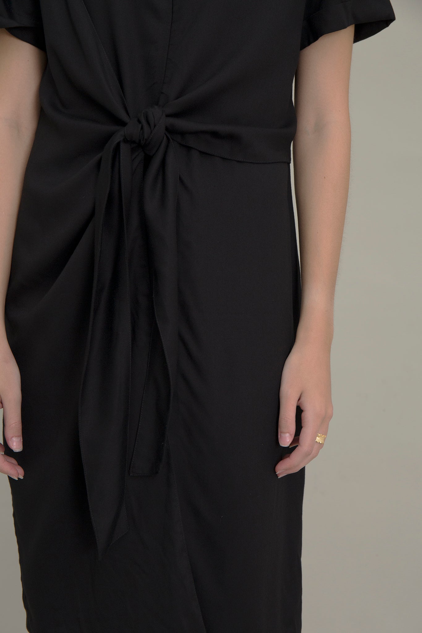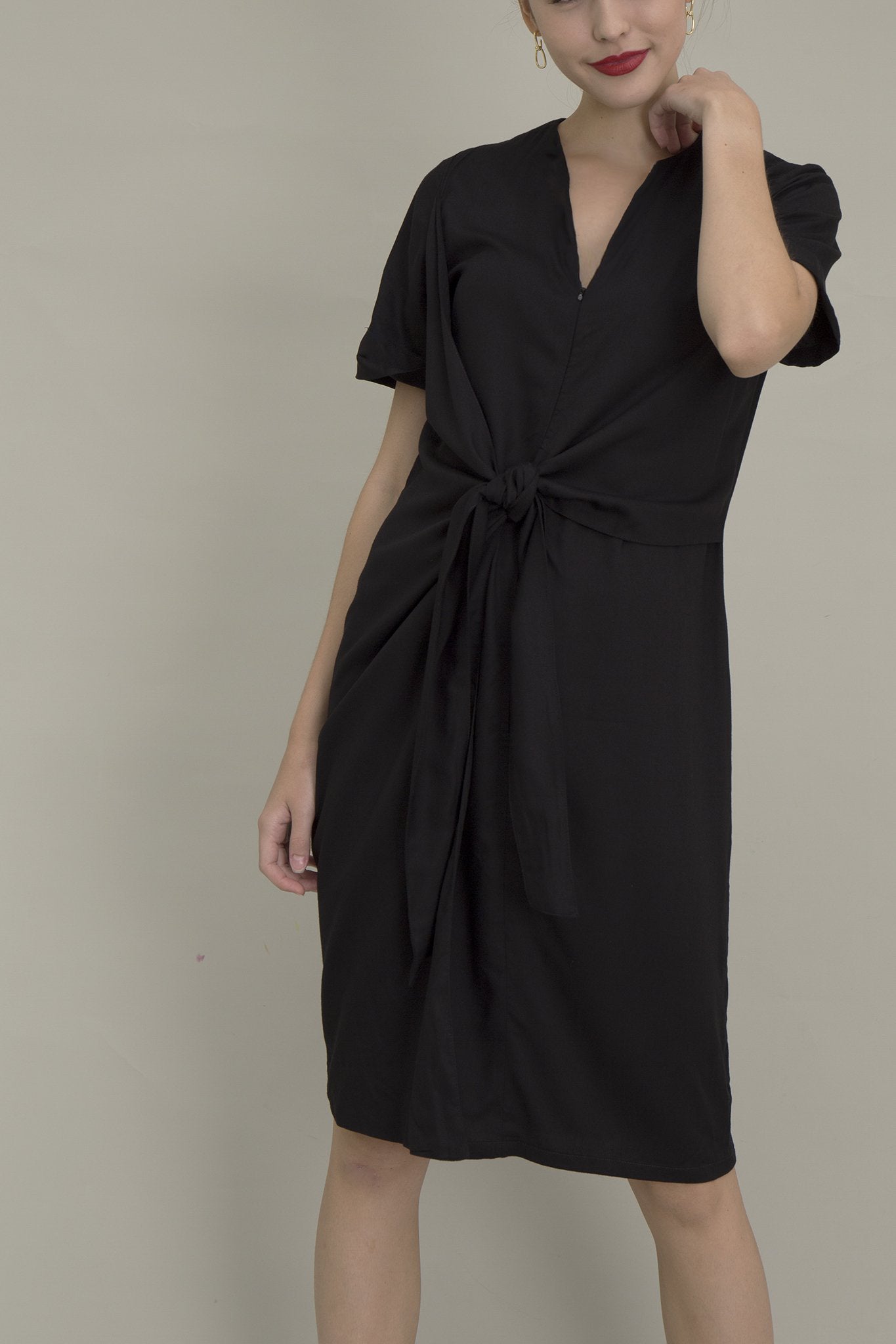 Tie the wrap in front for a draped effect that flatters the figure and hides your tummy.
