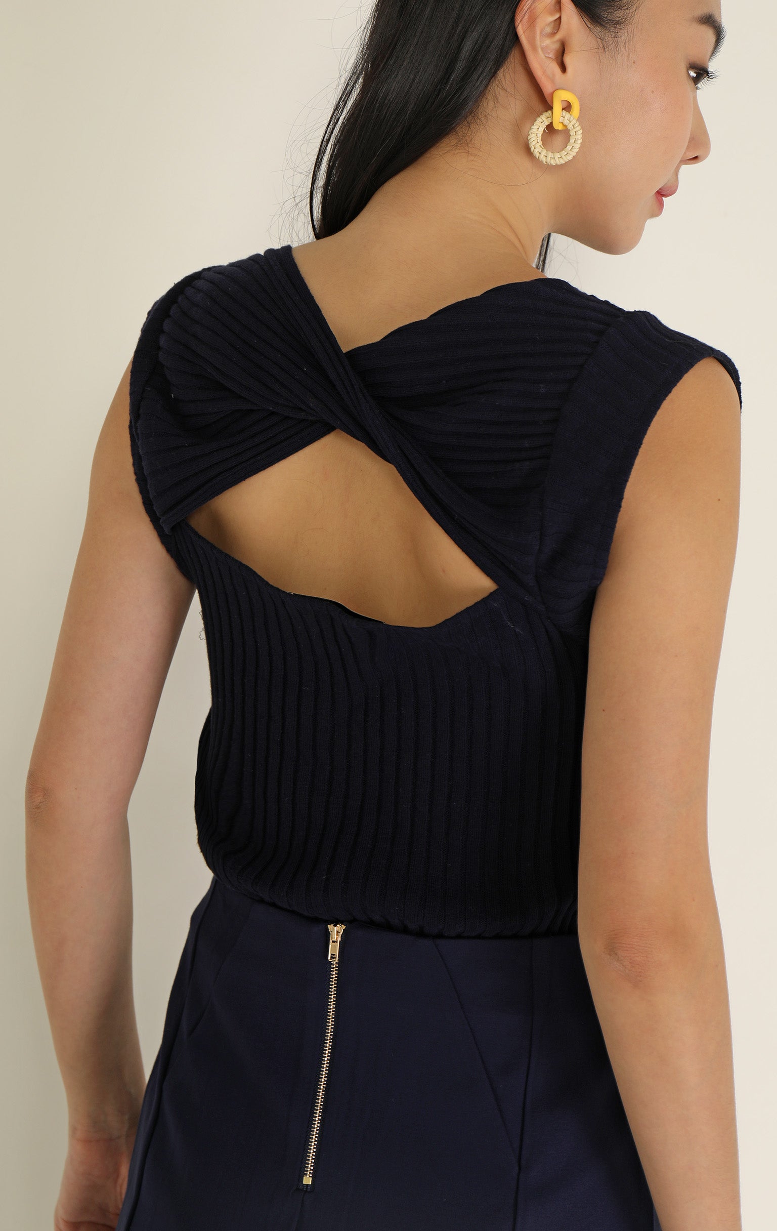 Made from a ribbed-knit material in a close silhouette with an interesting twist detail at the back.