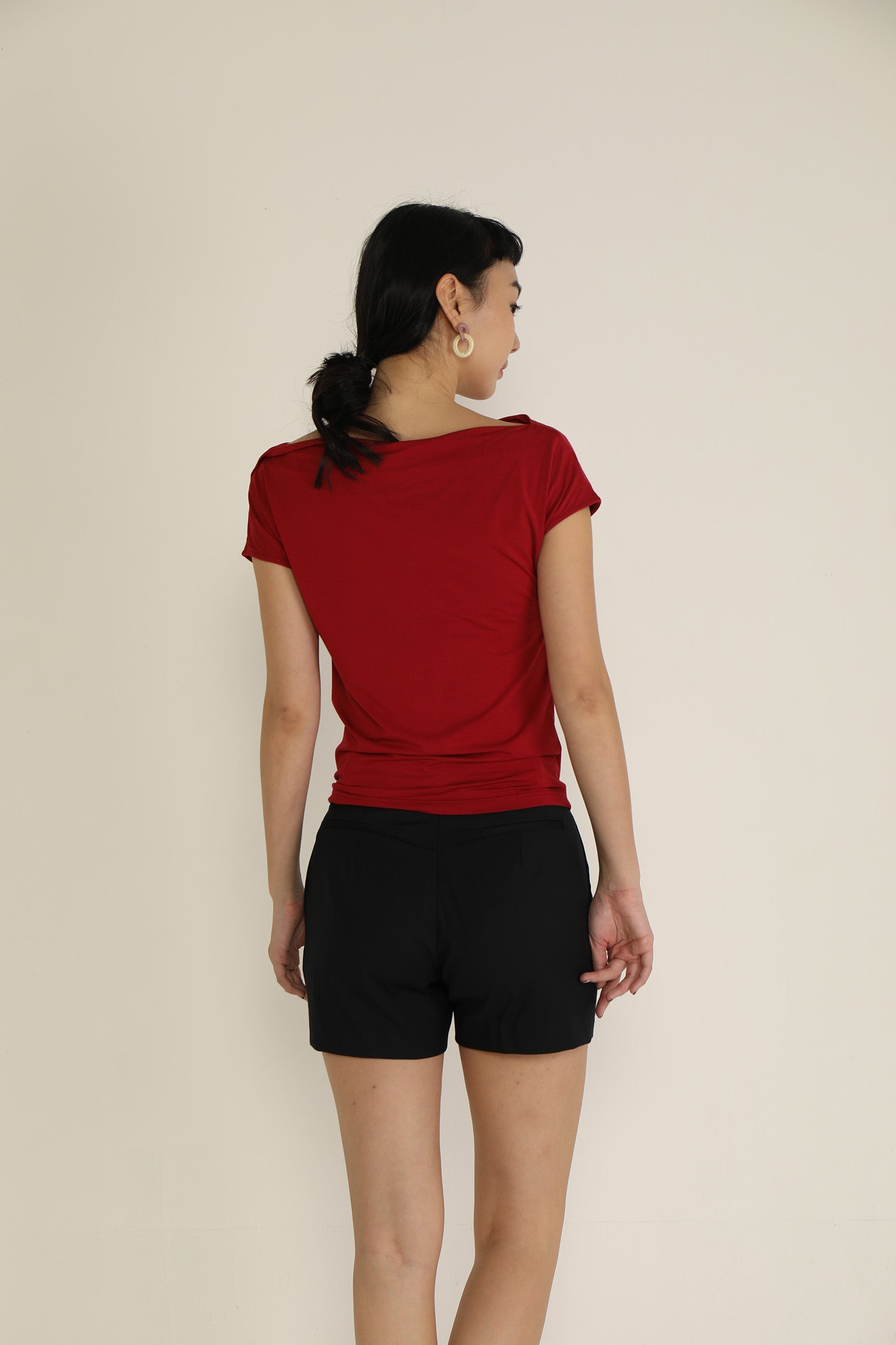 Penelope is made from a butter-soft rayon spandex fabric that has an asymmetric neckline so you can wear it on or off the shoulder.