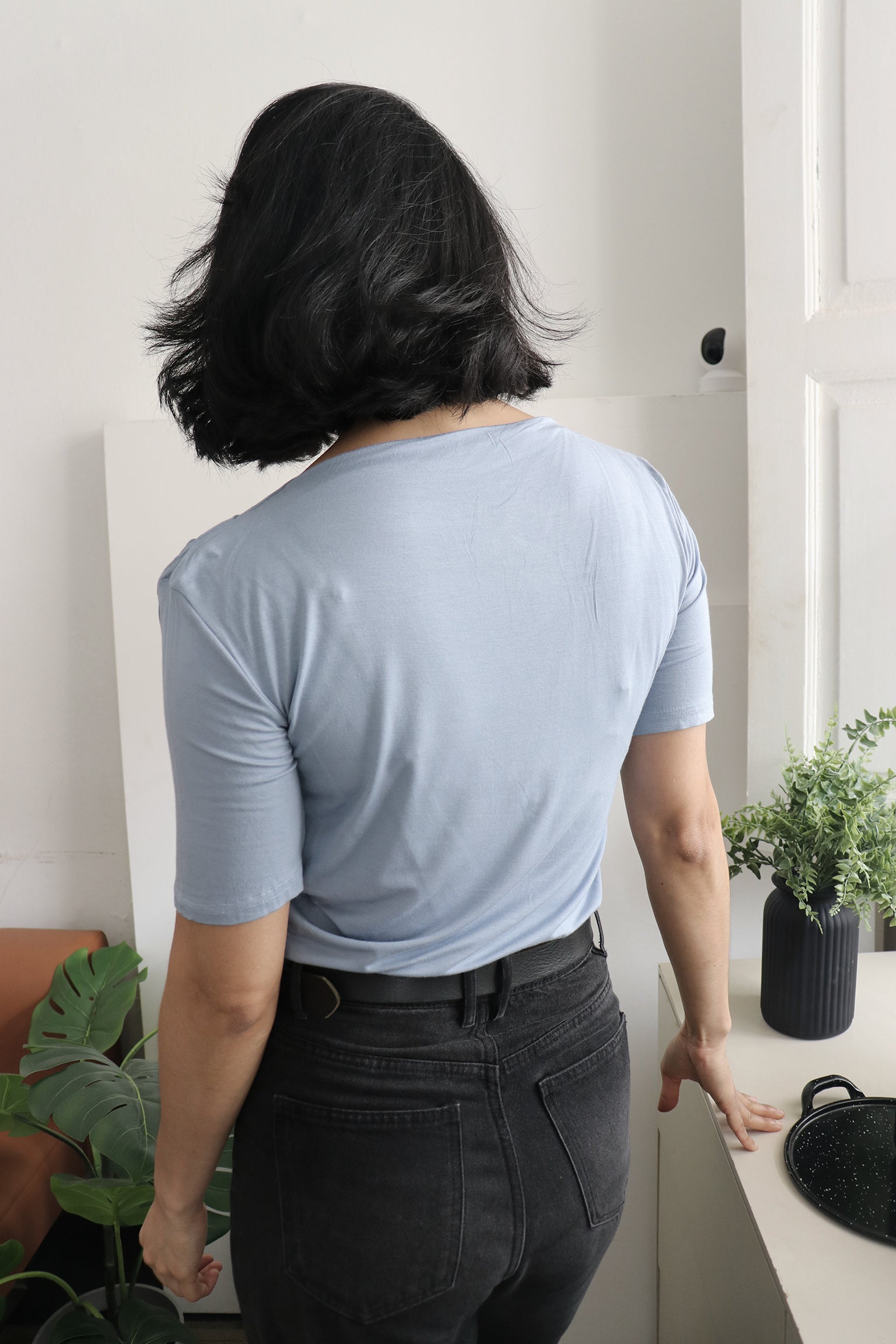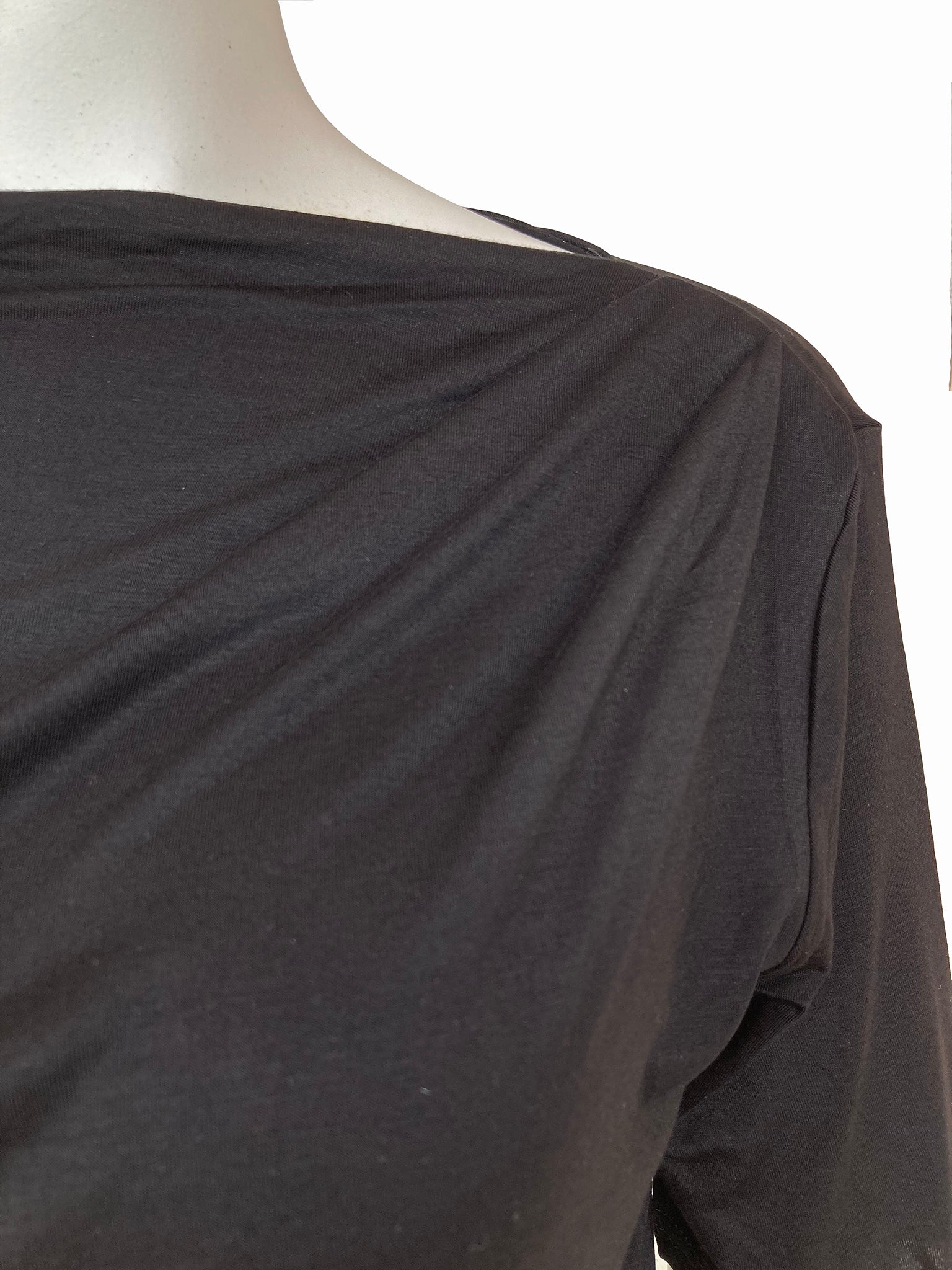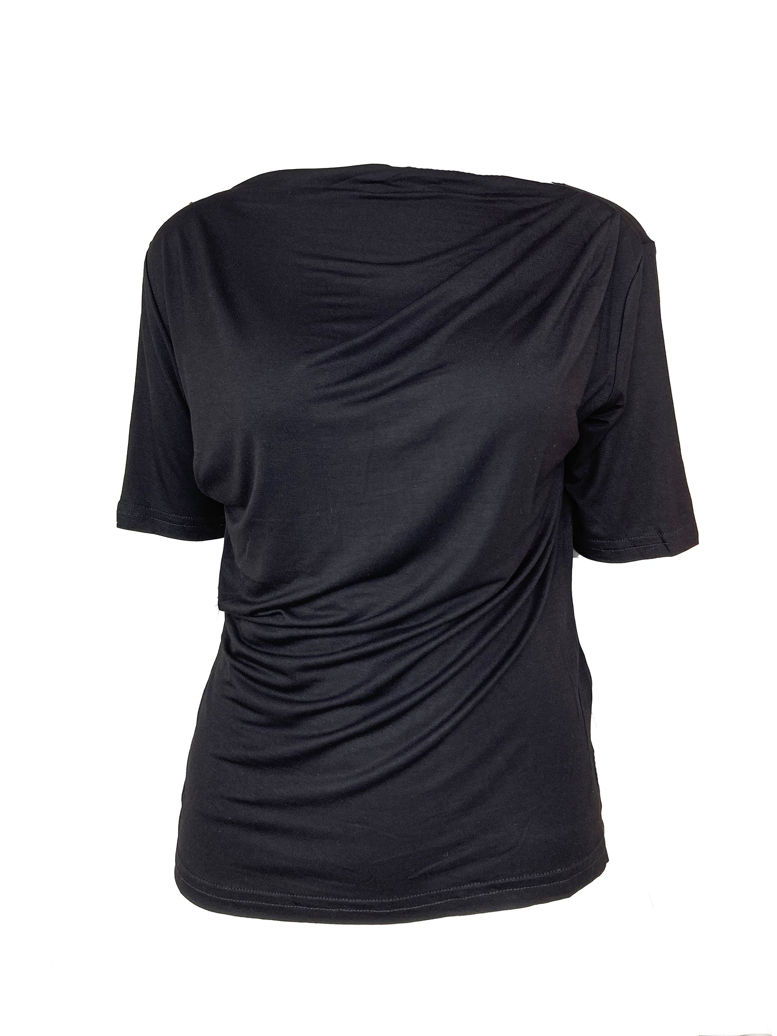 Our Rebecca drape top comes in a more waist focused drape. Wear it off shoulder or on.