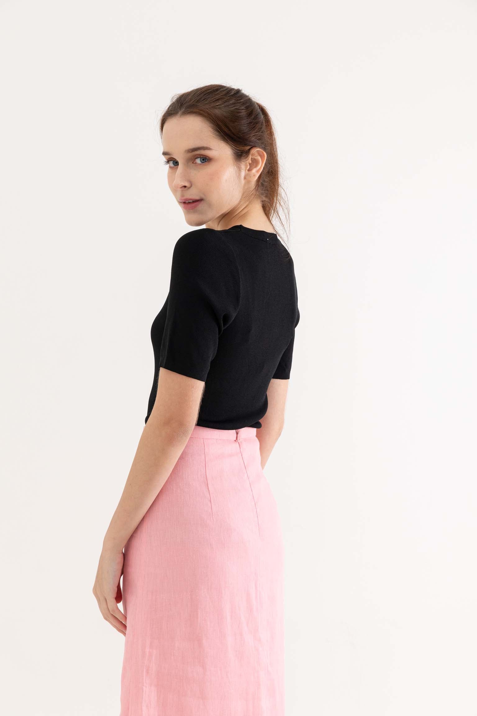 It can be worn tucked out or in. Pair it with a high waisted pant and blazer, or dress it down with jeans.